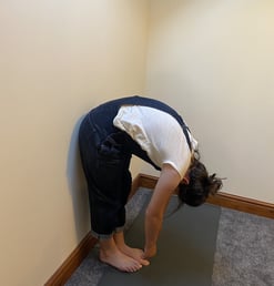 away from the wall, head firstThe wall provides sensory feedback – this “peeling” motion