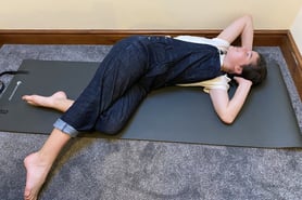 Let the head roll naturally with the movement, supporting it with clasped hands or a pillow
