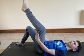 This stretch helps teens to guard against falling into their midline when standing. So often teens roll inwards, causing tight inner leg muscles and rounded shoulders. Bring one knee to your chest. Place a hand on each knee and slowly open the legs. This also works well lying down with feet against a wall.